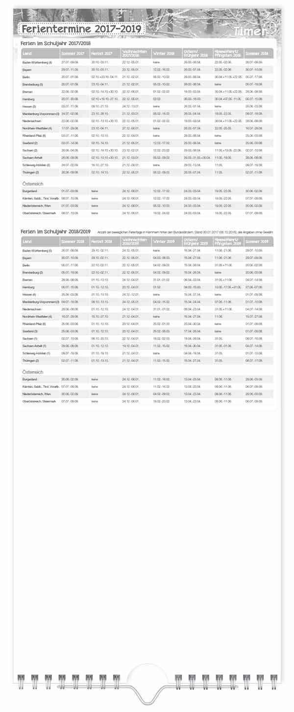 Der übersichtliche Wandkalender für jede Küche mit drei Spalten – farblich wechselnde Wochen sowie Feiertage und Ferien machen die Planung einfach.