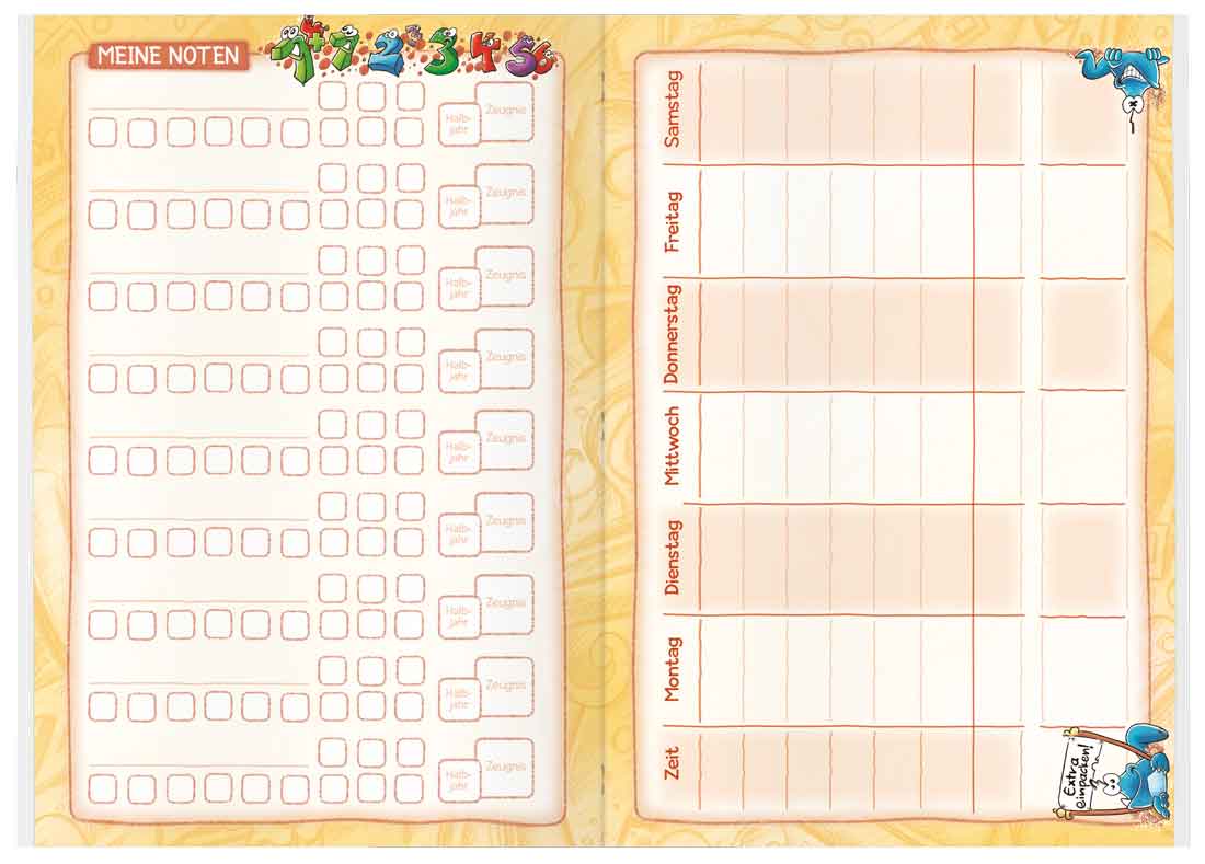 Aufgabenheft speziell für die Grundschule mit buntem Design, informativen Texten und witzigen Illustrationen.