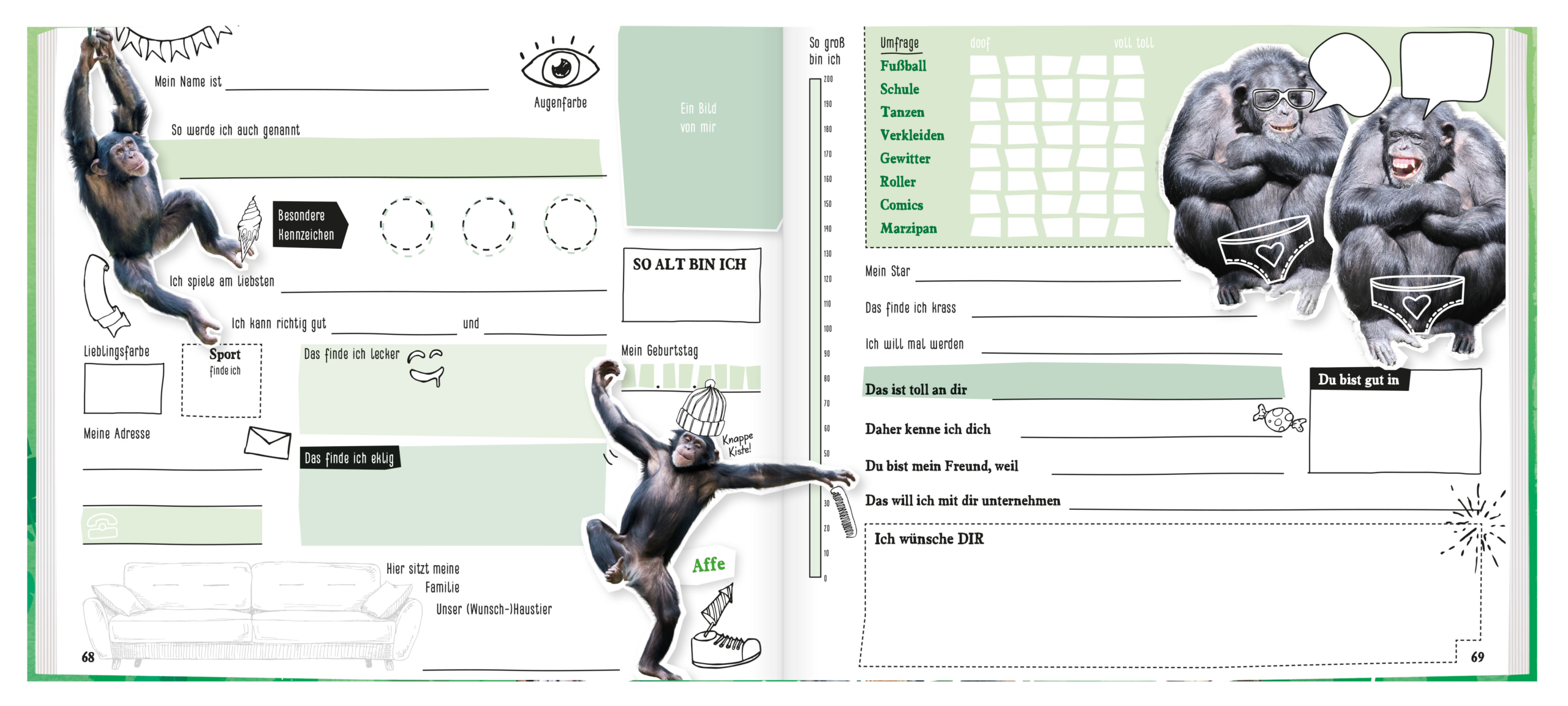 Freundebuch_premium_gruen_Innenseiten_Affen