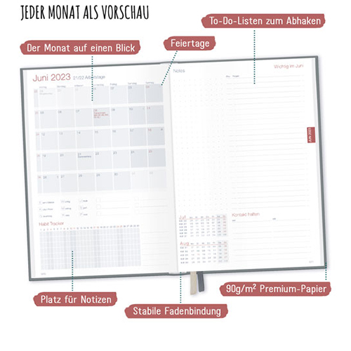 Chäff Business-Timer 22/23 Terminkalender Aufteilung 2