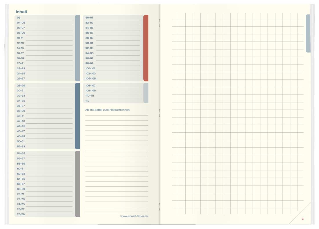Das Notizbuch mit heraustrennbaren Zetteln bietet reichlich Platz für Ideen und Skizzen. Die 128 nummerierten Seiten sind kariert und blanko.