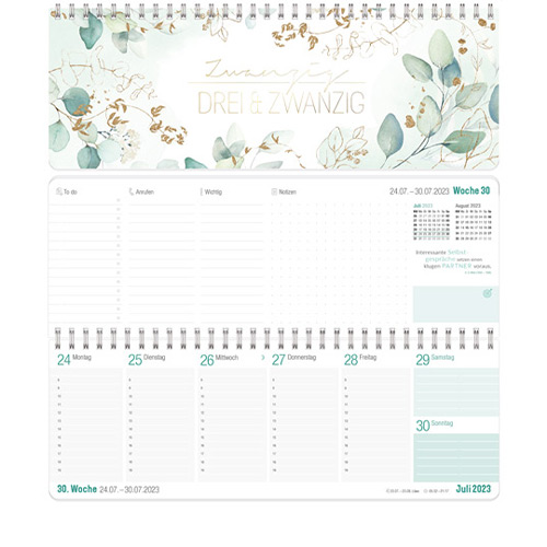 Wochen-Tischkalender 2023_Blattgold aufgeklappt