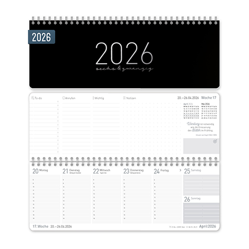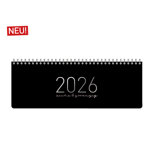Dieser Querkalender kommt farblich ganz klassisch daher, findet auf jedem Schreibtisch seinen Platz und ist mit seiner Aufteilung der optimale Terminplaner.