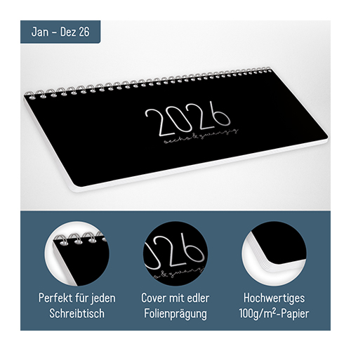 Der »Tischkalender Black Edition« für 2026 ist im Buch-/ Schreibwarenhandel, in Warenhäusern und auf amazon.de erhältlich.
