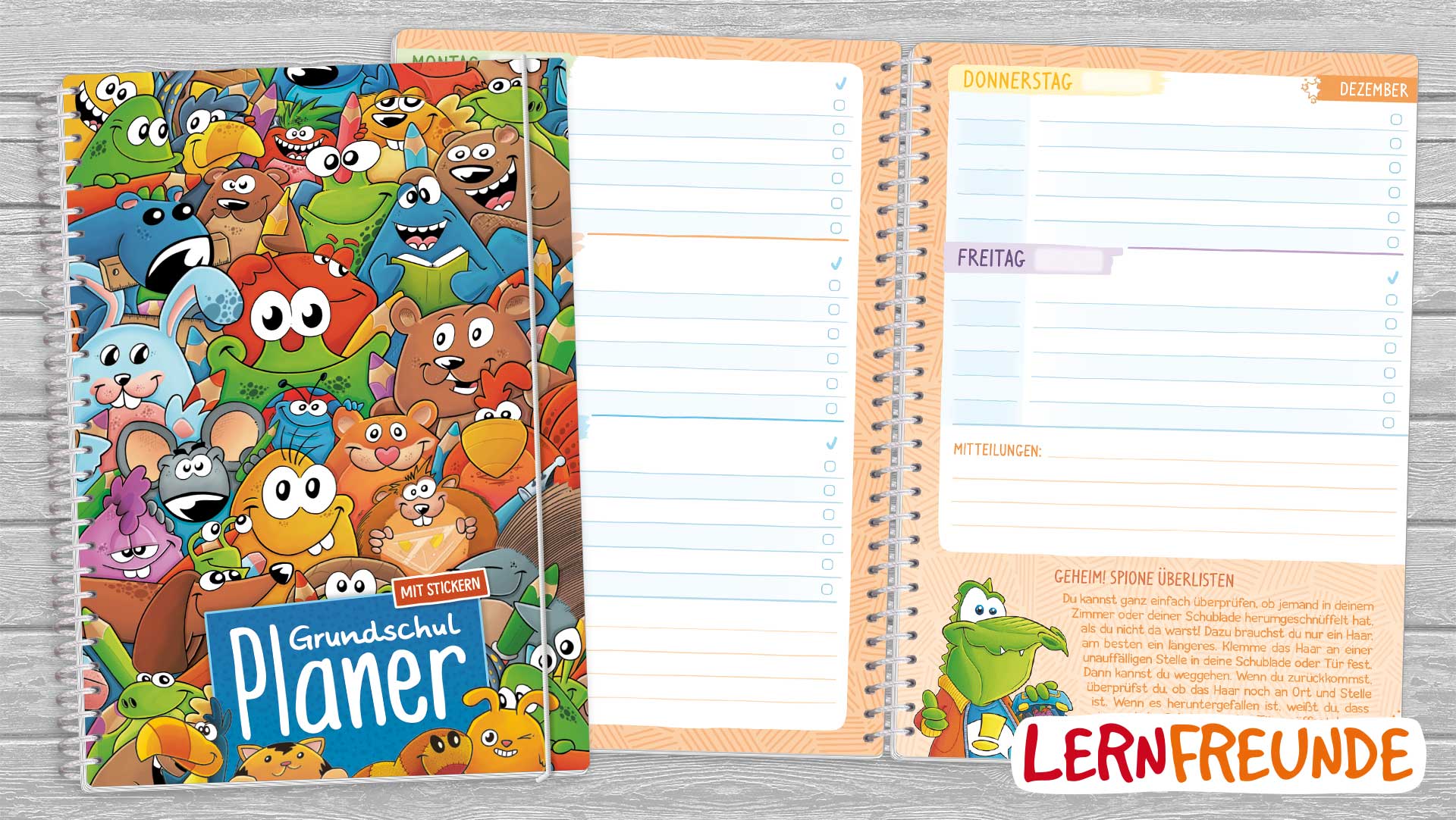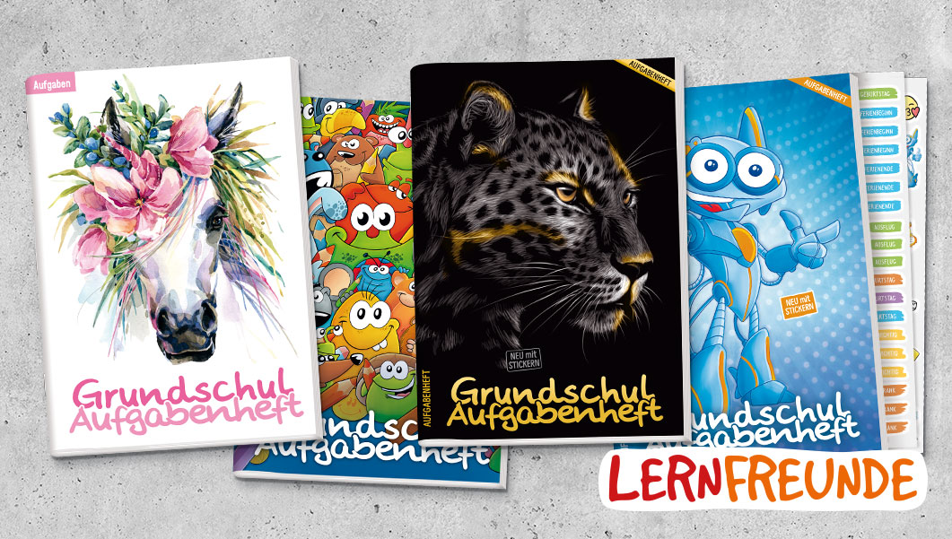 Spaß am Entdecken und Organisieren von Anfang an – dafür steht die Marke Lernfreunde. Das natürliche Lernbedürfnis wird gefördert und in Bahnen gelenkt, kindlicher Wissensdurst gestillt. Der didaktische Aufbau und die fröhliche Gestaltung kommen bei Eltern und Kindern gleichermaßen gut an. Liebevoll illustrierte Figuren begleiten die Grundschulkinder durch die ersten Schuljahre. Unsere speziell für die Grundschule entwickelten Hausaufgabenhefte erhalten Sie, je nach Unterrichtskonzept, mit vorgedrucktem Datum (Grundschul-Hausaufgabenheft) oder als Aufgabenheft ohne Datum.