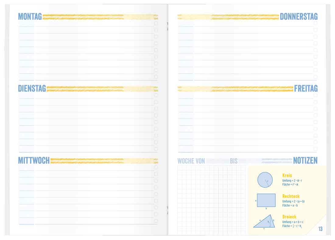 Das Aufgabenheft von Schulstuff bietet reichlich Platz zum EIntragen von Hausaufgaben und ist in den Formaten A5 und A6 erhältlich.