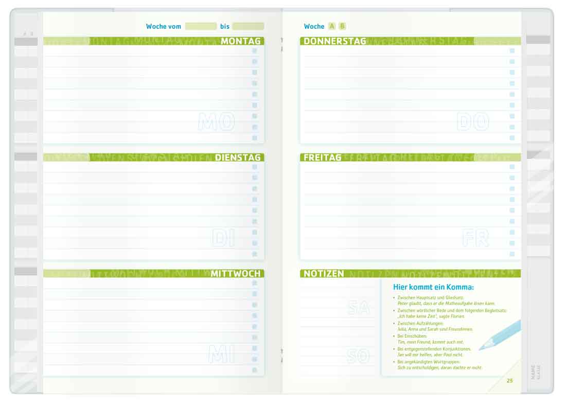 Bei dem Aufgabenheft »Schulstuff Smart« ist der Stundenplan am Rand immer sichtbar – ideal für clevere Faule, die die Stunden nicht jedes Mal eintragen wollen.