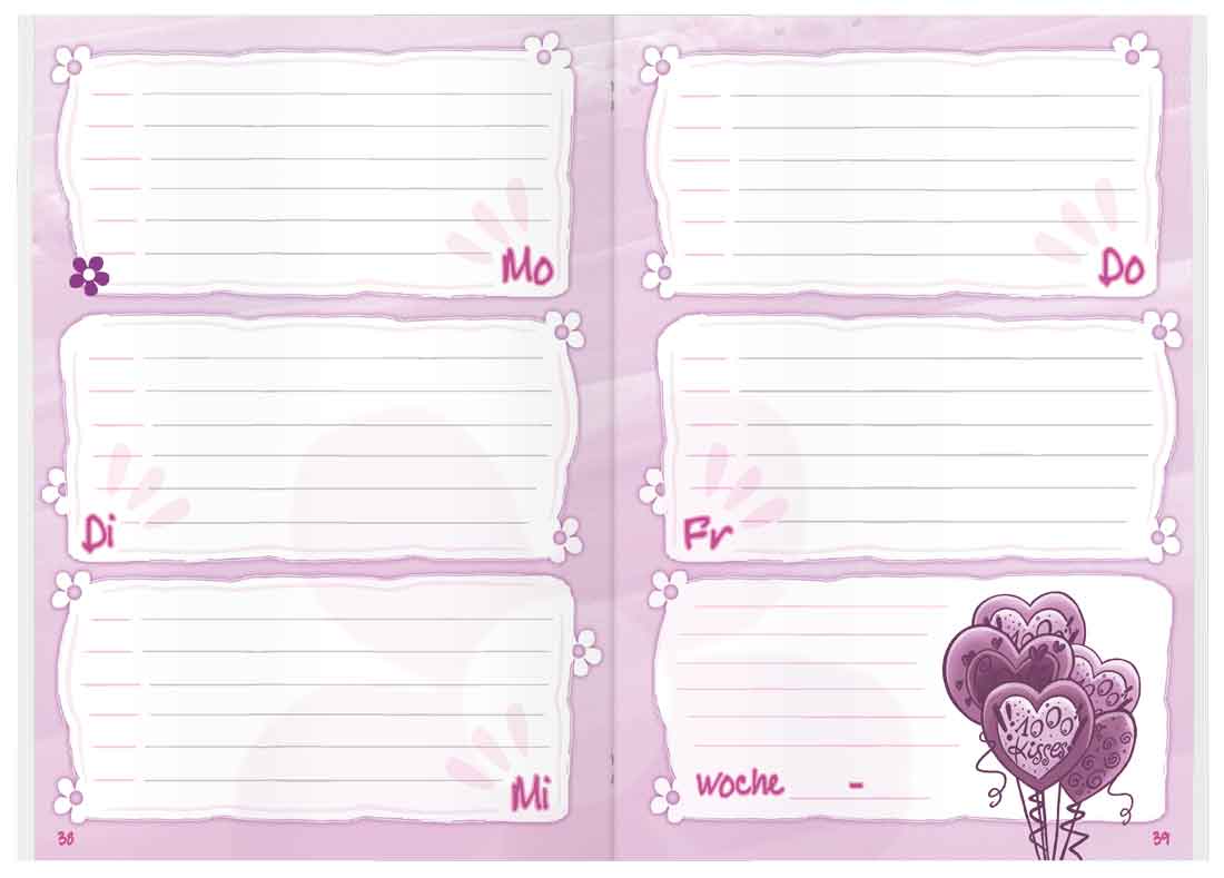 Kalendarium Girly: Aufgabenheft Schulstuff Thema