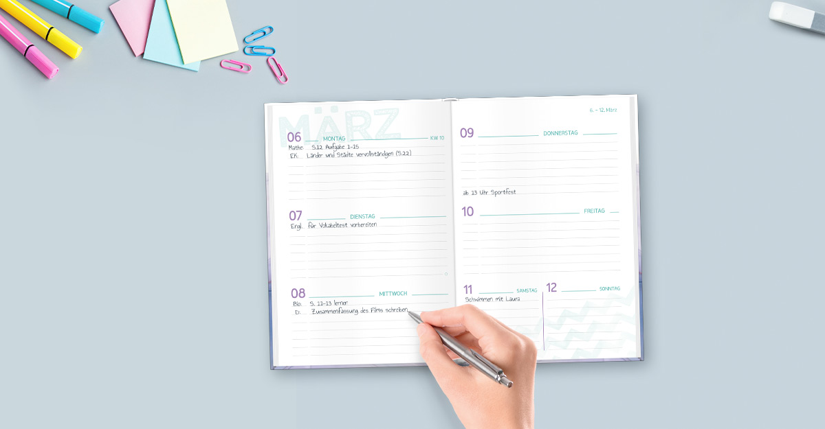 Mit dem Schülerkalender 2025/2026 für alle Jahrgangsstufen gelingt auf jeden Fall eine entspannte und stressfreie Planung. Die Laufzeit August 2025 – Juli 2026 richtet sich nach einem kompletten Schuljahr.