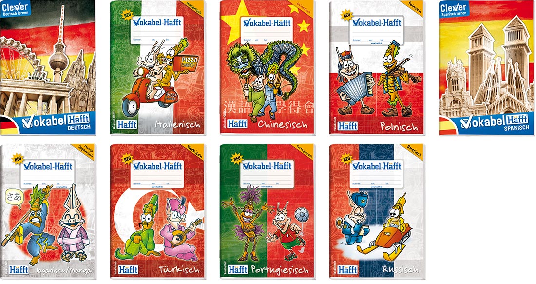Die »Vokabel-Häffte« für Englisch, Französisch, Latein, Spanisch und Universal in den verschiedenen Formaten sind im Buch-/ Schreibwarenhandel, in Warenhäusern und auf amazon.de erhältlich.