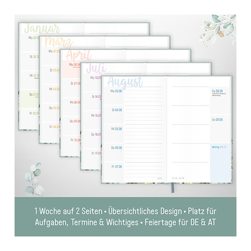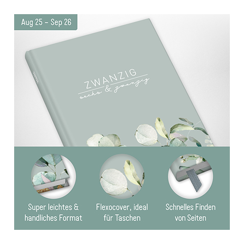 Die langlebige Fadenheftung und das robuste Flexocover machen den Häfft-Timer slim zum täglichen Begleiter.